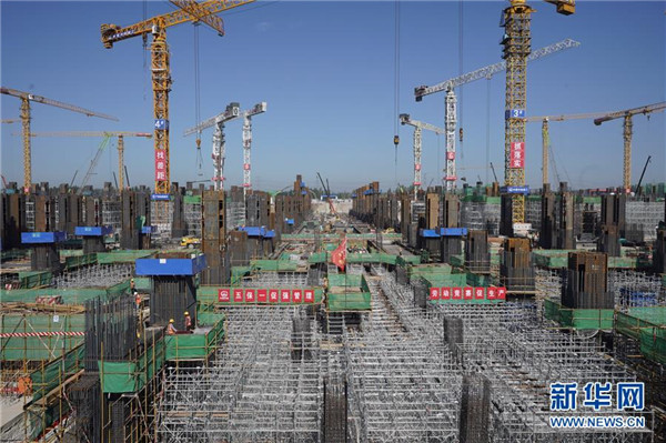 京雄城際鐵路雄安站總建筑面積47萬(wàn)平方米,地上3層,地下2層,其中地下主體結(jié)構(gòu)將于近期完成,即將轉(zhuǎn)入地上主體結(jié)構(gòu)施工。 新華社記者 邢廣利 攝
