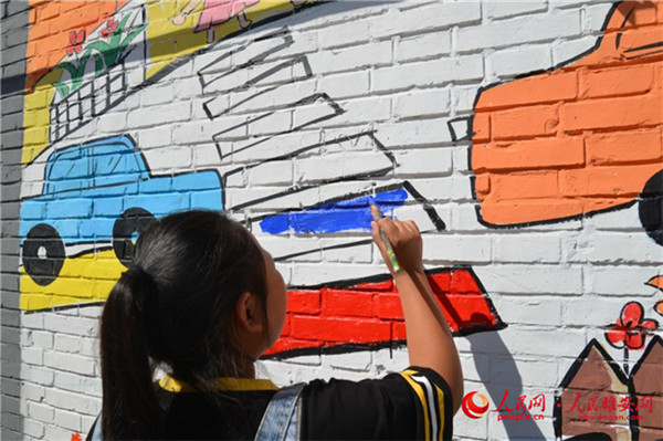 人民網(wǎng)雄安9月3日電 “安全童行 鄉(xiāng)繪美好”兒童友好鄉(xiāng)村公益彩繪活動(dòng)日前在雄安新區(qū)雄縣北沙口鄉(xiāng)大莊村舉辦,村里的孩子們在來自北京的志愿者的帶領(lǐng)下,用畫筆描繪著充滿童趣的交通安全主題墻繪。