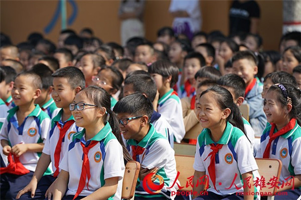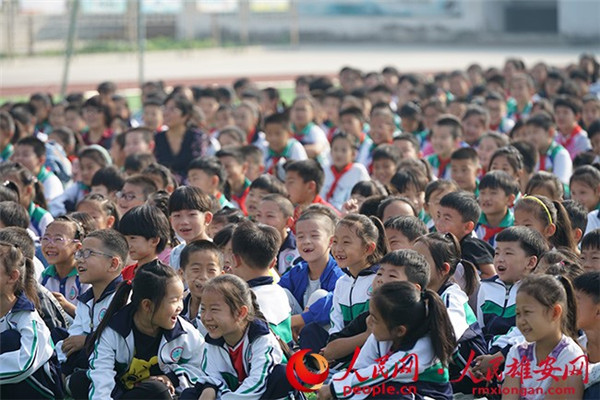 圖為安新縣第二小學(xué)的學(xué)生正在觀看演出。劉師豪 攝