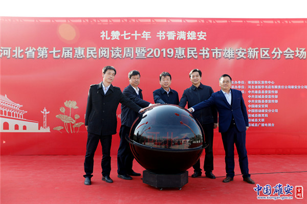 10月26日,河北省第七屆惠民閱讀周暨2019惠民書市雄安分會場啟動儀式現(xiàn)場,出席活動領(lǐng)導共同按下啟動球。中國雄安官網(wǎng)陳凱昆 攝