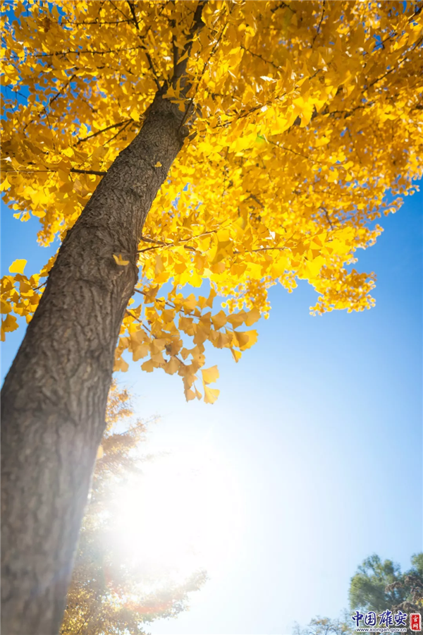 晴朗秋日里,黃燦燦的銀杏葉引人注目。中國(guó)雄安官網(wǎng)馬夢(mèng)迪 攝