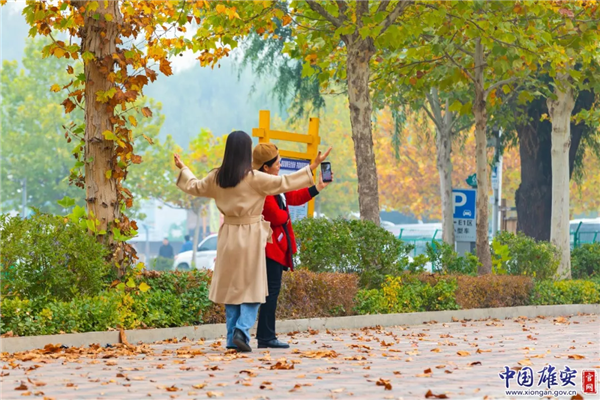 人們拿出手機(jī)與雄安秋色合影。中國(guó)雄安官網(wǎng)王京卓 攝