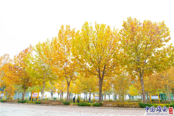 深秋時(shí)節(jié),雄安新區(qū)道路旁滿樹金黃。中國(guó)雄安官網(wǎng)毛鶴然 攝