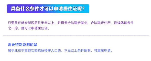 答:在雄安新區(qū)居住半年以上,并具備合法穩(wěn)定就業(yè)、合法穩(wěn)定住所、連續(xù)就讀條件之一的;屬于北京非首都功能疏解轉(zhuǎn)移人口的,不受以上條件限制,可直接申請(qǐng)。