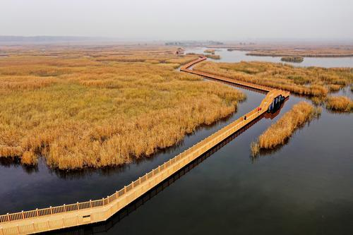 2020年11月5日拍攝的白洋淀風(fēng)光(無人機(jī)照片)。深秋時(shí)節(jié),“華北明珠”白洋淀水面如鏡,蘆葦金黃。近年來,通過有效治理,白洋淀水生態(tài)環(huán)境持續(xù)改善。新華社記者牟宇 攝