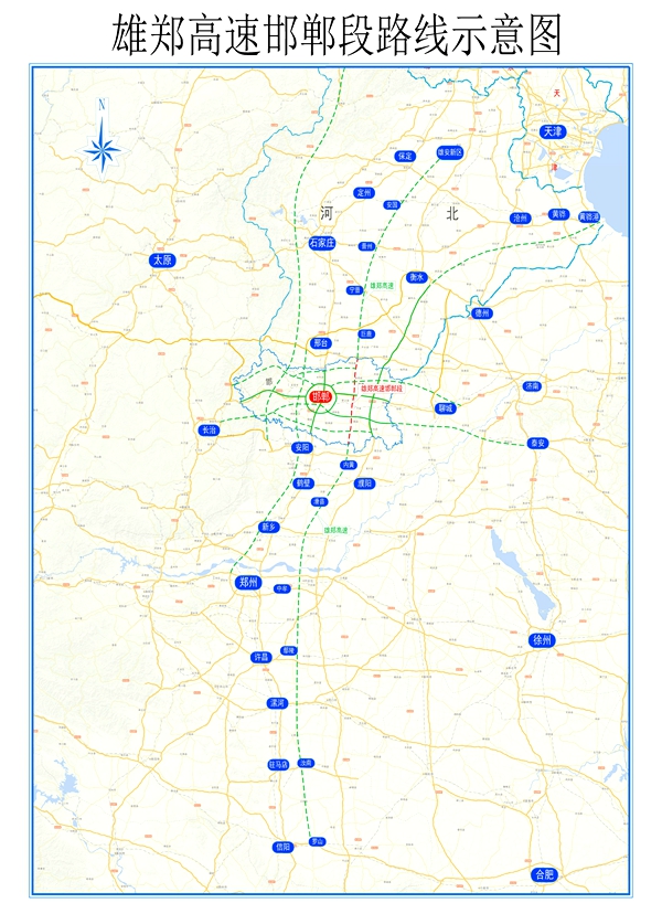 雄安新區(qū)至鄭州高速公路位于京港澳和大廣高速公路之間,北起雄安新區(qū),南至冀豫界后,向南和河南省規(guī)劃的安陽至羅山高速公路對接,形成雄安通達(dá)武漢的高速大通道。