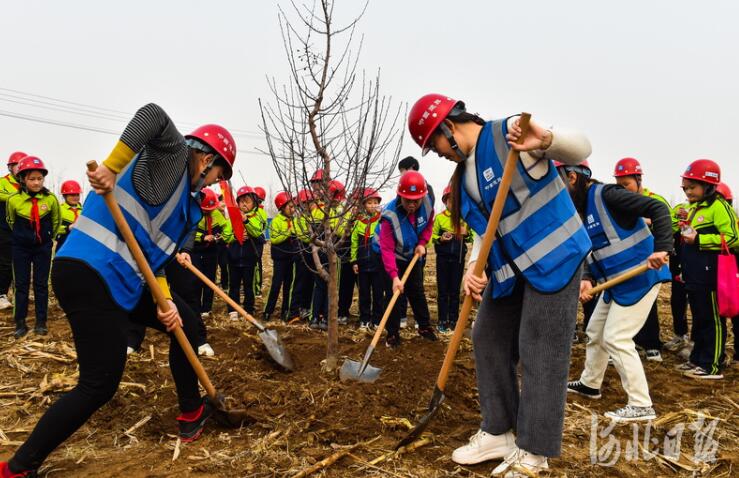 植樹節(jié)到來之際,中建二局與東張楚小學聯(lián)合在雄安“千年秀林”舉行“播種綠色、播種文明”植樹活動,共同栽下“雄安樹”“園丁樹”“心愿樹”,為雄安“千年秀林”添新綠。雄安新區(qū)設(shè)立以來,已累計造林約41萬畝。河北日報記者耿輝攝影報道