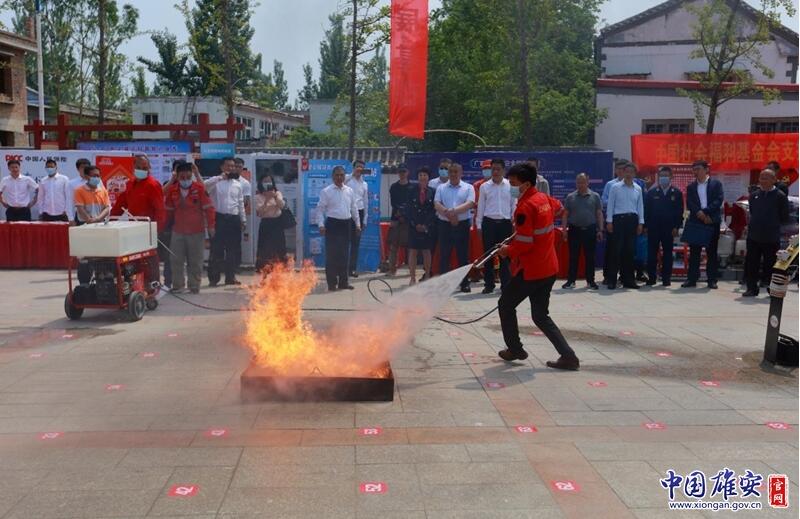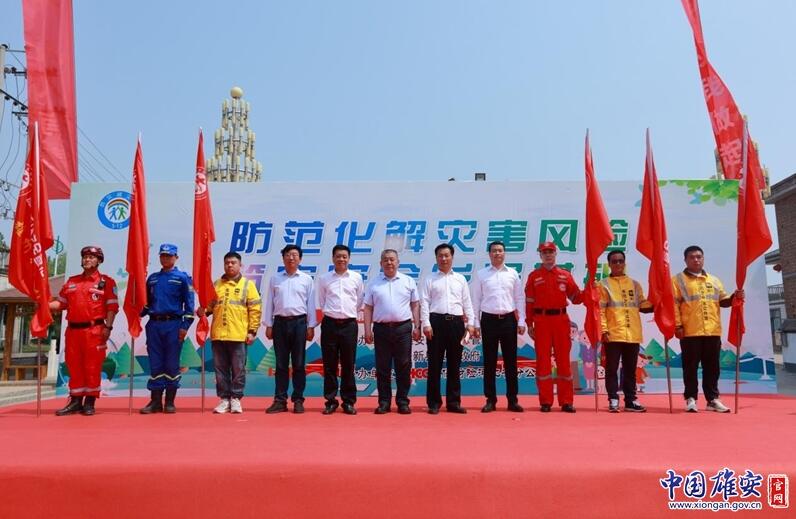 在全國防災(zāi)減災(zāi)日宣傳活動現(xiàn)場,戴泊生向安新小學(xué)頒發(fā)省級地震科普教育示范學(xué)校牌匾,劉樹軍向東淀頭村頒發(fā)全國綜合減災(zāi)示范社區(qū)牌匾,兩位領(lǐng)導(dǎo)共同向雄州救援隊、雄風(fēng)救援隊、藍天救援隊、美團代表隊等新區(qū)安全宣傳志愿者隊伍代表授旗。中國人民財產(chǎn)保險股份有限公司雄安分公司籌建負(fù)責(zé)人張友林為活動致開幕詞,中國福利基金會支持雄安公益基金執(zhí)行主任、北京支持雄安產(chǎn)業(yè)發(fā)展促進會常務(wù)副會長兼秘書長彌雪向雄安新區(qū)捐贈了高空細(xì)水霧滅火消防車。