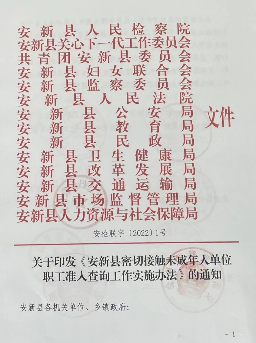 安新縣檢察院通過構建全覆蓋、常態(tài)化的密切接觸未成年人單位職工準入查詢制度,引導各行業(yè)主管行政機關積極履行監(jiān)管責任,有效切斷部分潛在犯罪人員密切或單獨接觸未成年人的途徑,持續(xù)凈化未成年人成長環(huán)境,并對潛在違法犯罪人員形成有效威懾,從而降低本地性侵害未成年人犯罪案發(fā)率。以“我管”促“都管”,實現(xiàn)安新縣密切接觸未成年人單位職工準入查詢全覆蓋、常態(tài)化。