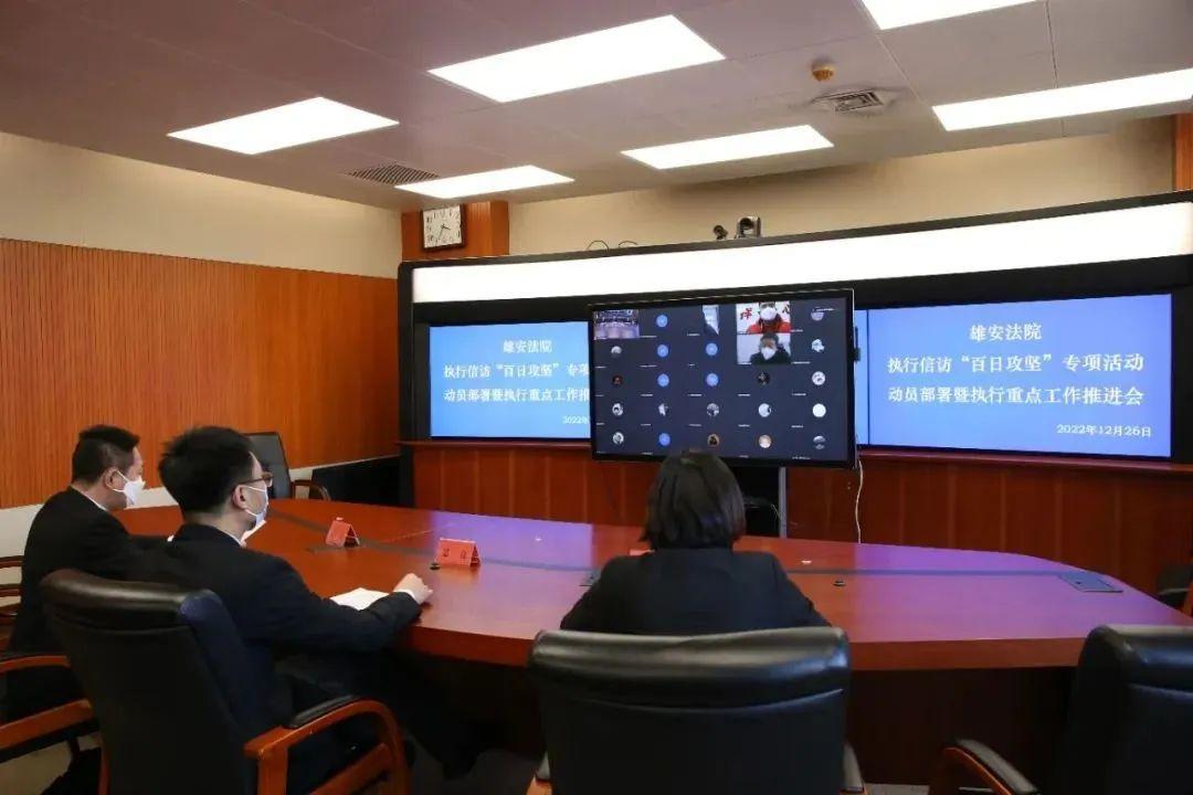 為深入傳達(dá)落實全國法院執(zhí)行信訪工作推進(jìn)會及河北全省法院執(zhí)行信訪“百日攻堅”專項活動動員部署會精神,攻堅執(zhí)行信訪案件化解,切實回應(yīng)人民群眾在執(zhí)行領(lǐng)域急難愁盼,12月26日下午,雄安中院組織召開全區(qū)法院執(zhí)行信訪“百日攻堅”專項活動動員部署暨執(zhí)行重點工作推進(jìn)會,進(jìn)一步統(tǒng)一思想、明確目標(biāo)、突出重點、壓實責(zé)任。