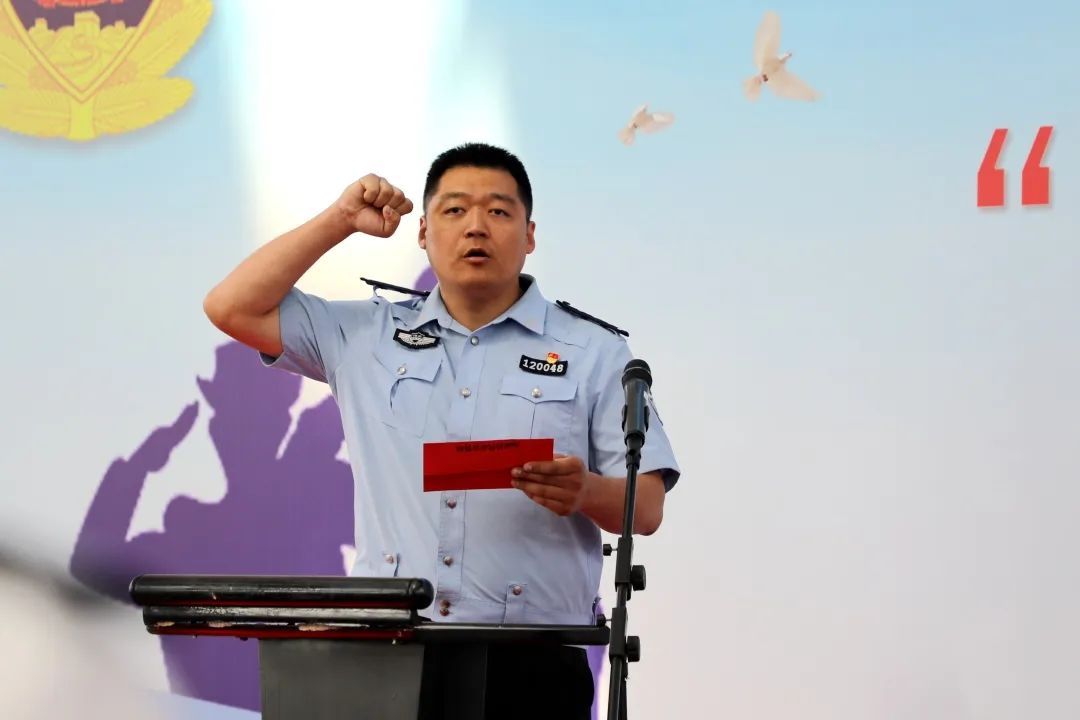 開幕式現(xiàn)場,全體人員隊列整齊、警容嚴整,莊嚴奏唱《中華人民共和國國歌》,裁判員代表和運動員代表分別進行宣誓。