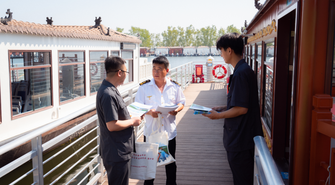 干警們還走進碼頭、游客服務(wù)中心、船艙等,選取白洋淀流域集中管轄以來兩級法院審理的非法捕撈水產(chǎn)品、非法排污等典型案例進行以案說法,深入淺出地講解了破壞生態(tài)環(huán)境帶來的嚴重后果以及需要承擔的法律責任,呼吁現(xiàn)場游客從身邊小事做起,做白洋淀流域環(huán)境保護的宣傳者、倡導者、行動者。并結(jié)合刑法、環(huán)境保護法等法律法規(guī),解答現(xiàn)場群眾和游客們提出的環(huán)境保護相關(guān)法律問題。