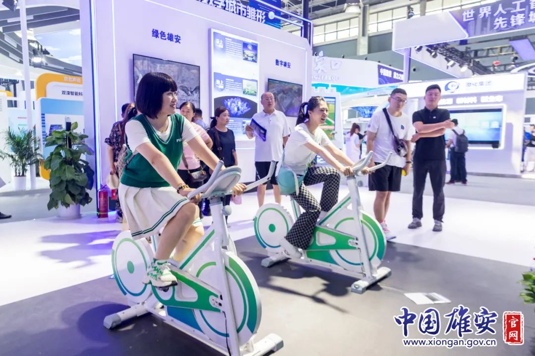 2023中國國際數(shù)字經(jīng)濟(jì)博覽會雄安展區(qū)的自行車體驗(yàn)區(qū)。中國雄安官網(wǎng)牛思佳 攝