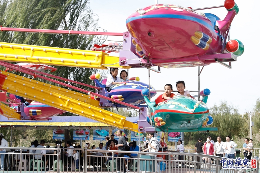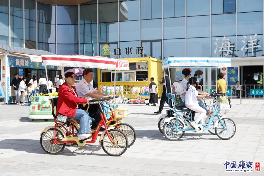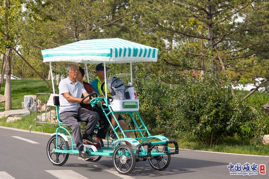 游客乘坐觀光自行車在園內(nèi)游玩。中國雄安官網(wǎng)毛鶴然 攝