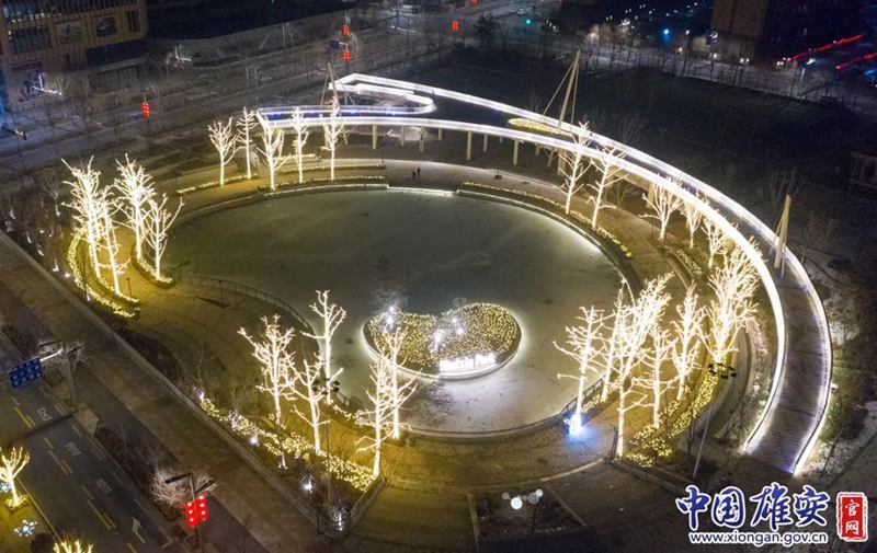 水心公園燈光點(diǎn)亮璀璨夜色。中國(guó)雄安官網(wǎng)李鑫 攝