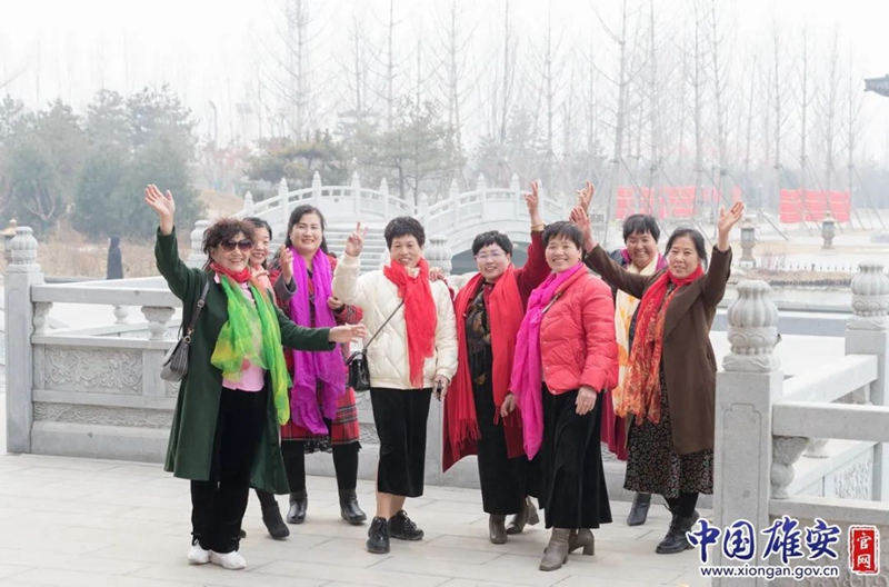 在悅?cè)莨珗@,游客合影留念。中國(guó)雄安官網(wǎng)李鑫 攝