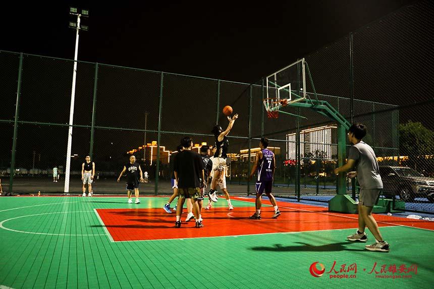 容城縣體育公園正在打籃球的人們。人民網(wǎng) 蘇春丹攝