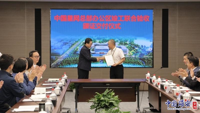 中國星網(wǎng)雄安總部項(xiàng)目竣工聯(lián)合驗(yàn)收頒證儀式現(xiàn)場。雄安新區(qū)宣傳網(wǎng)信局供圖