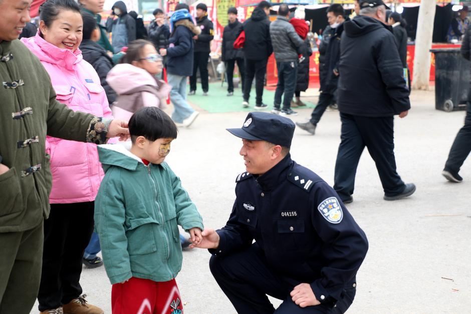 “小朋友真可愛,臉上畫的是孫悟空嗎?一定要拉好爸爸媽媽的手,千萬別走丟了?!迸d易路派出所所長陳錦順細心引導游客注意安全。“廟會期間游客眾多,往年大概都會有幾萬人,之前就遇到過家長和孩子因人多走散的情況,所以我就多念叨多提醒。說一千道一萬,咱們都只有一個共同的目標——讓群眾玩的安心?!?/p>
