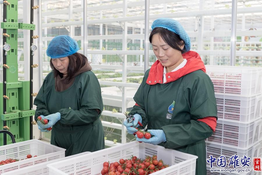 張榮的家就住在距離雄安智慧農(nóng)業(yè)科技園僅1公里的北王昝村,每天騎行5分鐘上班,一天勞作八個小時。“我只負責采摘、分揀、打包裝這些小活兒,至于施肥澆水、溫度濕度,都是智能AI說了算?!睆垬s笑著說,在“家門口”上班,不僅沒有風吹日曬,工作強度也不大,還有一份可觀的收入,簡直太幸福了。