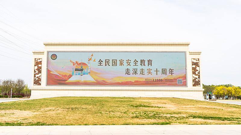雄安新區(qū)三賢廣場大屏循環(huán)播放全民國家安全教育日宣傳海報、視頻。吳玉婷攝