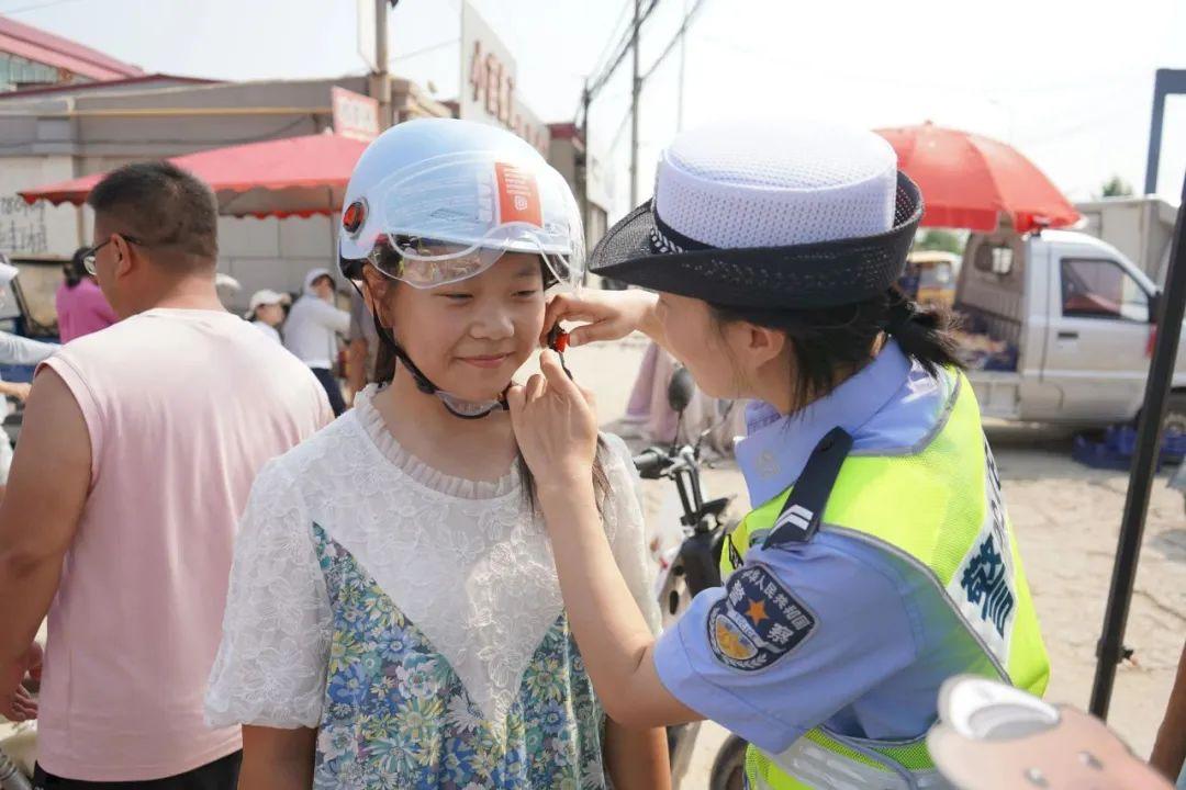 穿梭在集市車(chē)流中,民警為來(lái)往車(chē)輛貼上醒目標(biāo)語(yǔ):“喝酒不開(kāi)車(chē),開(kāi)車(chē)不喝酒;一盔一帶,安全常在”。