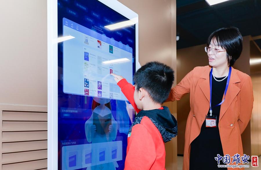 讀者在體驗圖書館內的智能設備。中國雄安官網發(fā)