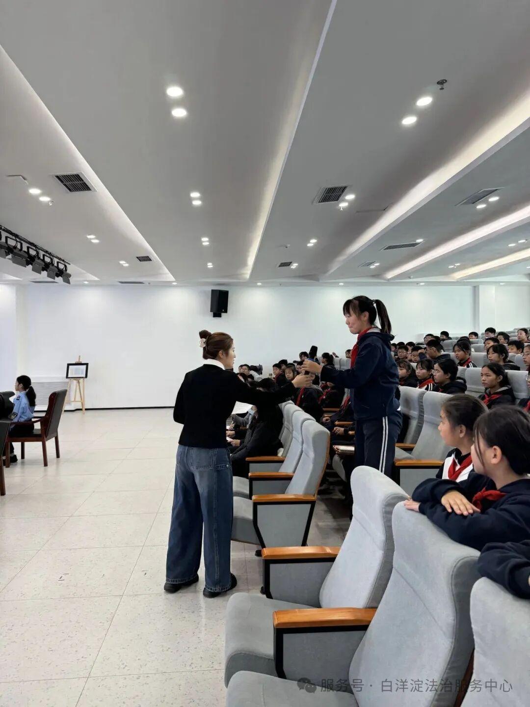 庭審結束后,主持人結合劇本進行法律知識提問,現(xiàn)場同學積極互動,認真作答。