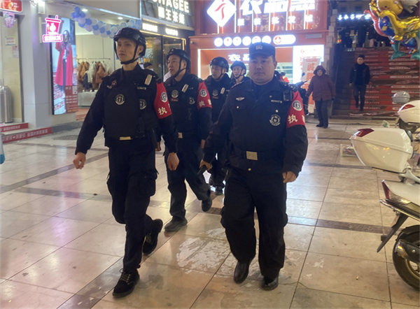 華燈初上,貴州省貴陽市南明區(qū)青云市集人頭攢動。位于市集大門口的警務站警燈閃爍,一隊隊“藏藍身影”來回穿梭,守護著城市的煙火氣。