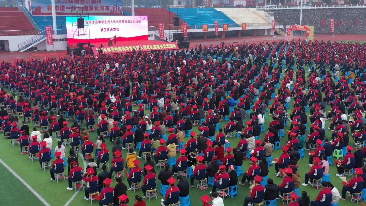 2024年12月4日是第十一個國家憲法日,貴州省教育廳、貴州省司法廳、共青團省委在黔東南州凱里市第一中學,舉辦主題為“弘揚憲法精神、領(lǐng)航青春成長”的貴州省高中學生成人儀式禮敬憲法示范活動。