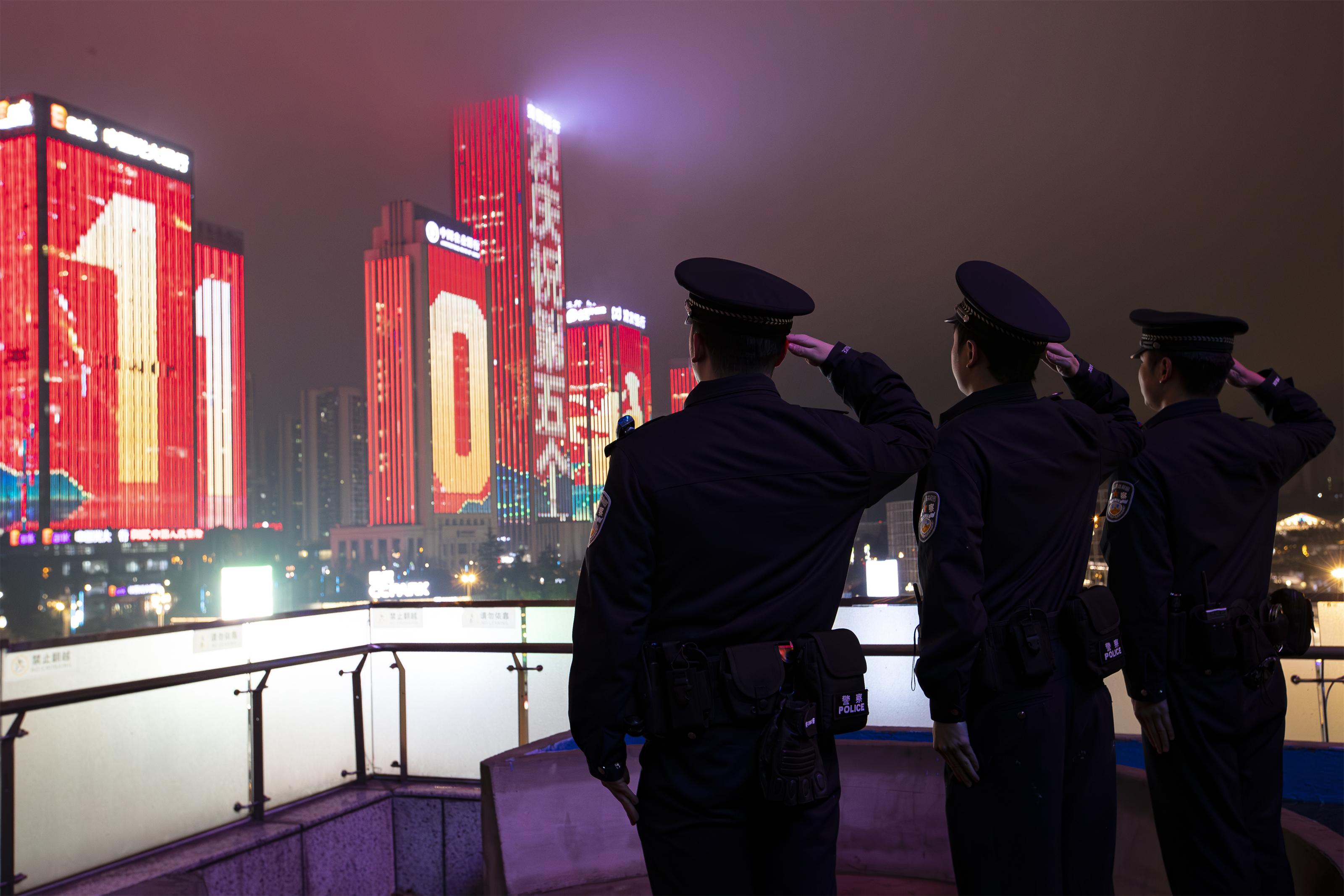 燈光為人民警察點亮,平安因忠誠守護長久。1月9日19時,在貴州省貴陽市觀山湖區(qū)金融城,以“人民警察”為主題的燈光秀如約而至、閃亮登場。