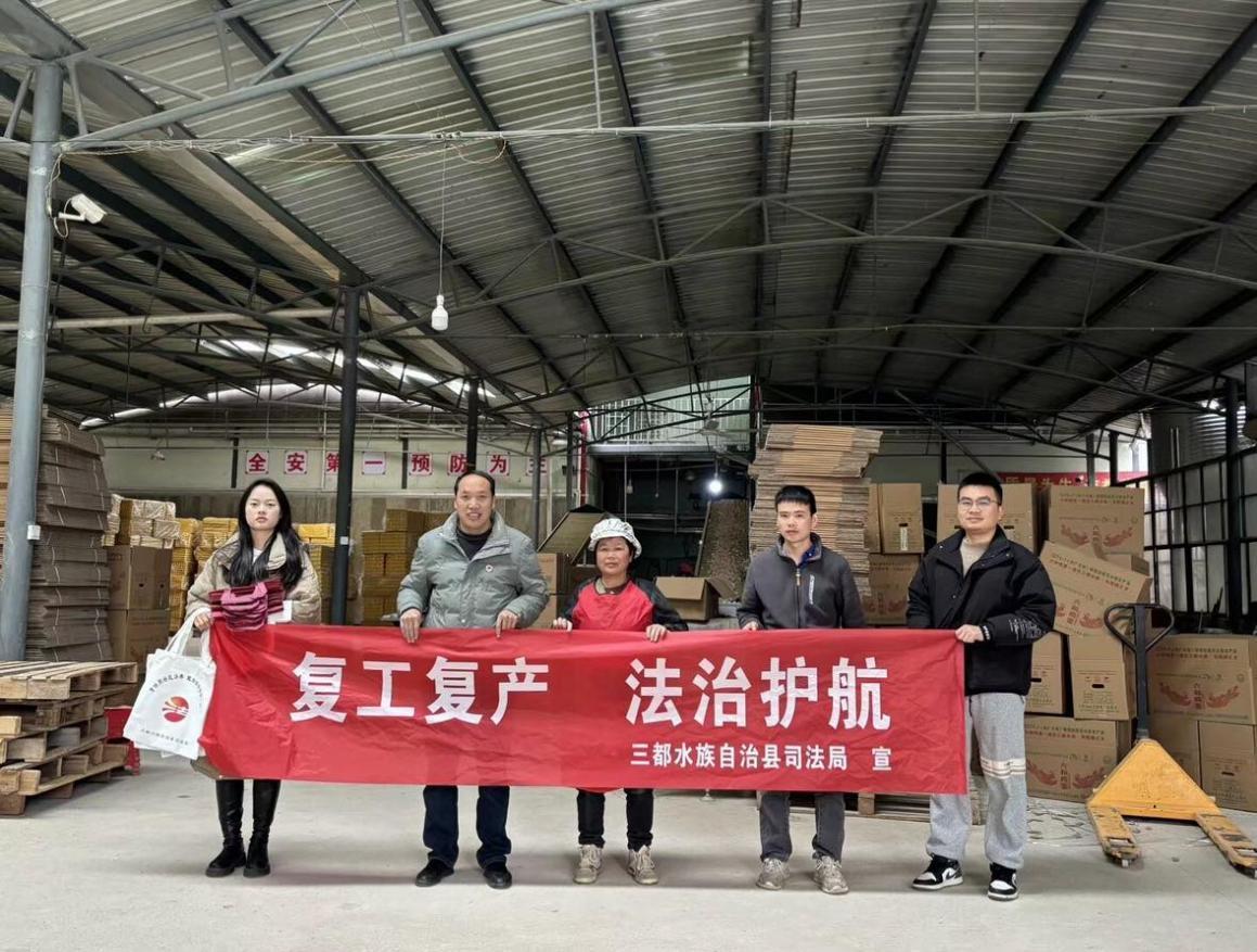 春節(jié)假期結(jié)束后,各企業(yè)陸續(xù)恢復工作。為確保企業(yè)合法、有序和高效地復工復產(chǎn),有效預防和遏制企業(yè)違法事件的發(fā)生,進一步優(yōu)化和提升法治化營商環(huán)境,2月8日,貴州省黔南州三都縣司法局普安司法所深入普安鎮(zhèn)轄區(qū)各企業(yè),開展以“復工復產(chǎn) 法治護航”為主題的送法進企業(yè)宣傳活動。