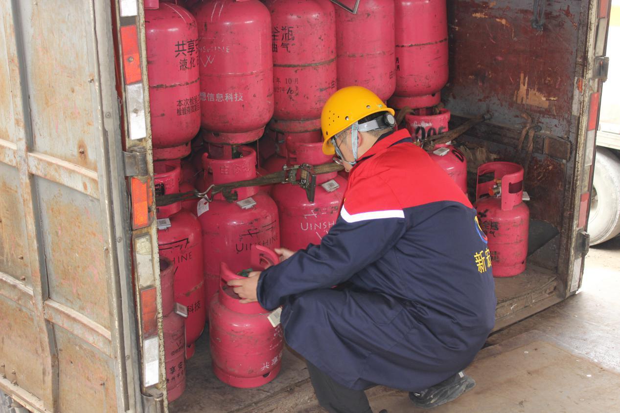 執(zhí)法人員先后來(lái)到云南國(guó)星能源有限公司貴州分公司、貴州新宏達(dá)石化有限公司,重點(diǎn)對(duì)氣瓶充裝單位許可資格是否在有效期內(nèi)、是否充裝不符合安全技術(shù)規(guī)范氣瓶、作業(yè)人員是否持有證件、充裝前后的檢查是否按照安全技術(shù)規(guī)范要求進(jìn)行、是否執(zhí)行氣瓶全流程追溯管理等進(jìn)行檢查。