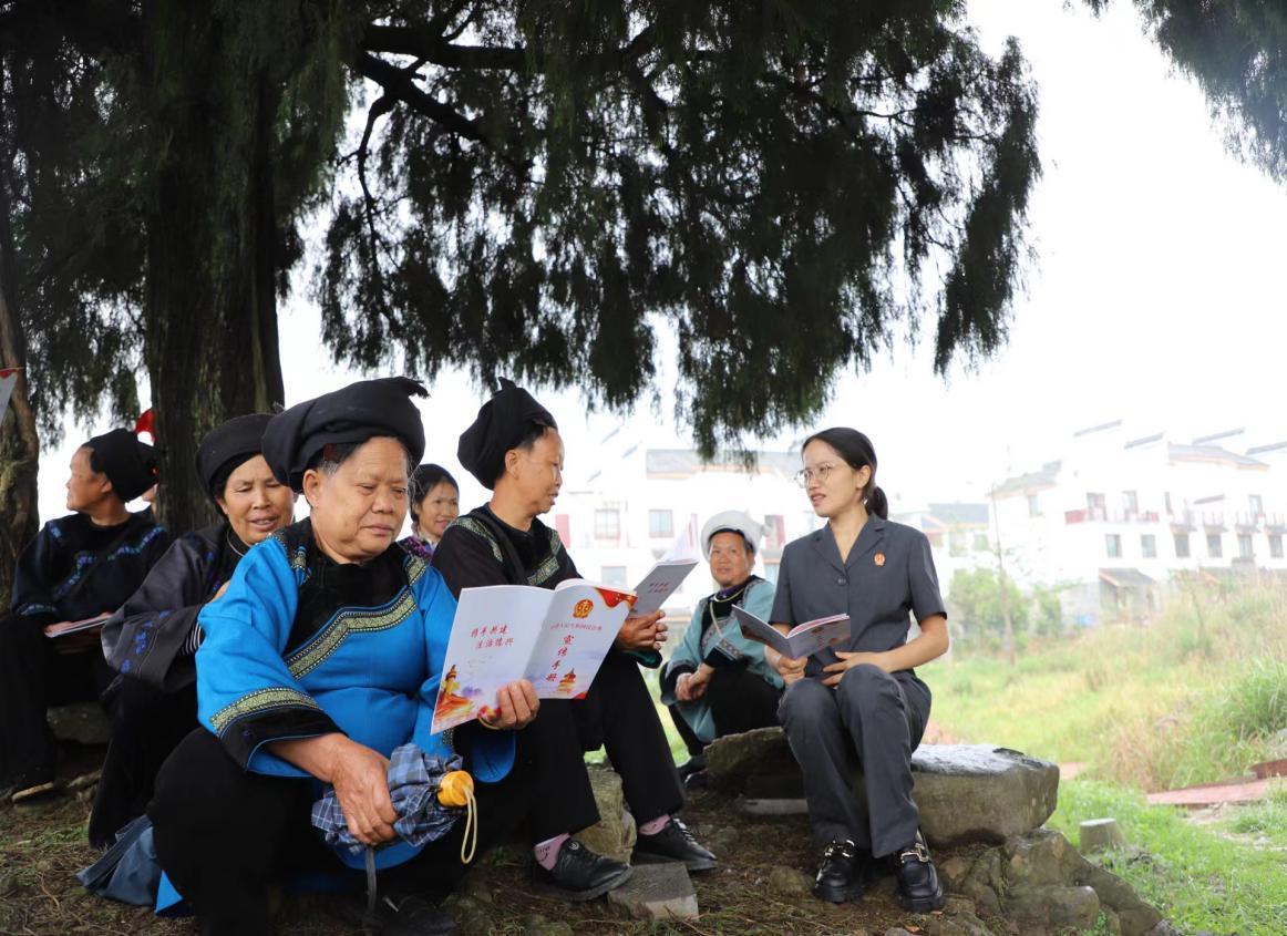 作為一名水族法官,蒙勝翠還結(jié)合本地水族群眾講傳統(tǒng)、重習(xí)俗,蒙勝翠就借助“水書先生”“繡娘”的智慧與經(jīng)驗,將水家文化習(xí)俗與現(xiàn)代法治精神相融合,通過開展“水語法庭”“布依語法庭”巡回審判,聯(lián)合“水書先生”等鄉(xiāng)賢參與矛盾糾紛調(diào)處,成立“繡娘調(diào)解室”、組建“水鄉(xiāng)巾幗調(diào)解隊伍”等,開展多方聯(lián)動,實現(xiàn)情理法融合,促進(jìn)矛盾糾紛實質(zhì)化解。