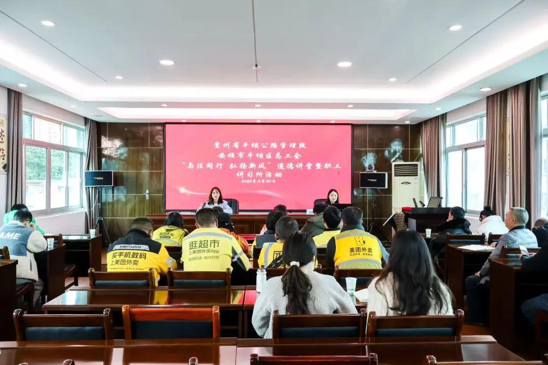 近日,貴州省安順市平壩區(qū)總工會與貴州省平壩公路管理段聯(lián)合舉辦了“與法同行 弘揚新風(fēng)”職工講習(xí)所宣講宣傳活動,旨在加強法治宣傳,提升干部職工法律意識,助力精神文明與廉潔文化建設(shè)?;顒游似綁螀^(qū)總工會代表、京平環(huán)衛(wèi)工人、美團騎手及平壩公路管理段職工等 50余名新就業(yè)形態(tài)勞動者參與。