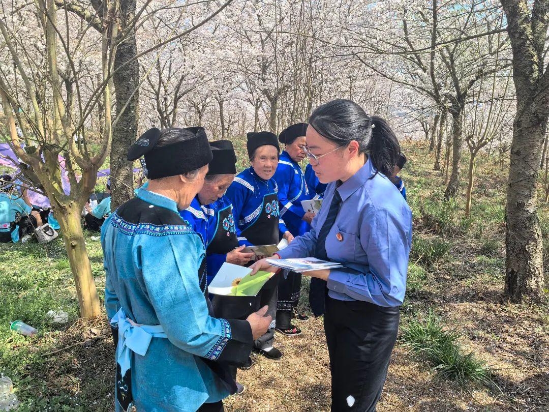 春意漸濃,櫻花盛放。近日,貴州省安順市西秀區(qū)黃臘鄉(xiāng)櫻花園內(nèi),一場別開生面的反詐宣傳活動如約而至。由安順市人民檢察院、安順市公安局、安順市人民銀行聯(lián)合主辦的“櫻舞春風·反詐同行”主題活動,將反詐宣傳與春日賞櫻場景深度融合。安順市人民檢察院聯(lián)合西秀區(qū)人民檢察院開展法治宣傳,用一抹“檢察藍”守護群眾的“錢袋子”,為浪漫櫻花季增添法治溫度。
