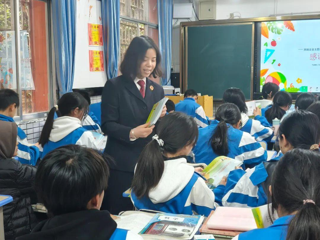 “同學(xué)們,你眼中的網(wǎng)絡(luò)是什么樣的呀?”“當(dāng)你收到陌生人發(fā)來(lái)的奇怪鏈接,可以點(diǎn)開(kāi)嗎?”課程開(kāi)始,未檢干警以青少年眼中的網(wǎng)絡(luò)是什么為開(kāi)篇,與學(xué)生進(jìn)行互動(dòng)問(wèn)答,了解學(xué)生觸網(wǎng)現(xiàn)狀后以真實(shí)的案例、動(dòng)畫(huà)短片向同學(xué)們講解網(wǎng)絡(luò)各類騙局、網(wǎng)絡(luò)違法犯罪相關(guān)知識(shí)。同學(xué)們紛紛表示聽(tīng)有所獲,在今后的學(xué)習(xí)生活中會(huì)做到安全上網(wǎng)、文明上網(wǎng)。課程結(jié)束后,未檢干警給學(xué)生發(fā)放法治宣傳手冊(cè),將知識(shí)延伸到課堂外,進(jìn)一步強(qiáng)化學(xué)生法治意識(shí)。