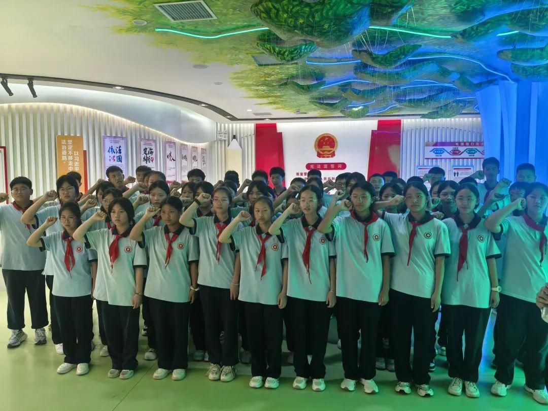 在講解員的帶領(lǐng)下,學(xué)生們有序參觀了序廳、法治學(xué)習(xí)廳、保護(hù)懲戒廳、安全教育廳、強(qiáng)國教育廳、尾廳和模擬法庭等7個主題展廳。在法治學(xué)習(xí)廳,同學(xué)們進(jìn)行憲法宣誓,在心中種下法治意識與規(guī)則意識的種子;通過講解員的介紹,學(xué)習(xí)了憲法、民法典和古代法律知識等內(nèi)容,明晰了法律在社會生活中的廣泛應(yīng)用和保障作用。
