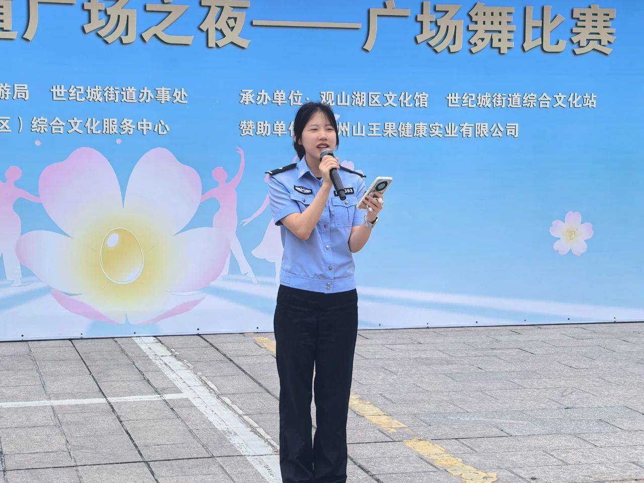 近日,貴州省貴陽(yáng)市觀山湖區(qū)文體廣電旅游局、世紀(jì)城街道辦事處在世紀(jì)金源購(gòu)物中心廣場(chǎng)聯(lián)合主辦“跳出風(fēng)采?舞動(dòng)一夏”廣場(chǎng)舞比賽,觀山湖區(qū)分局世紀(jì)城派出所以此為契機(jī),開(kāi)展了一場(chǎng)別開(kāi)生面的反詐宣傳,為這場(chǎng)文化盛宴和現(xiàn)場(chǎng)群眾增添了實(shí)用且暖心的安全底色。