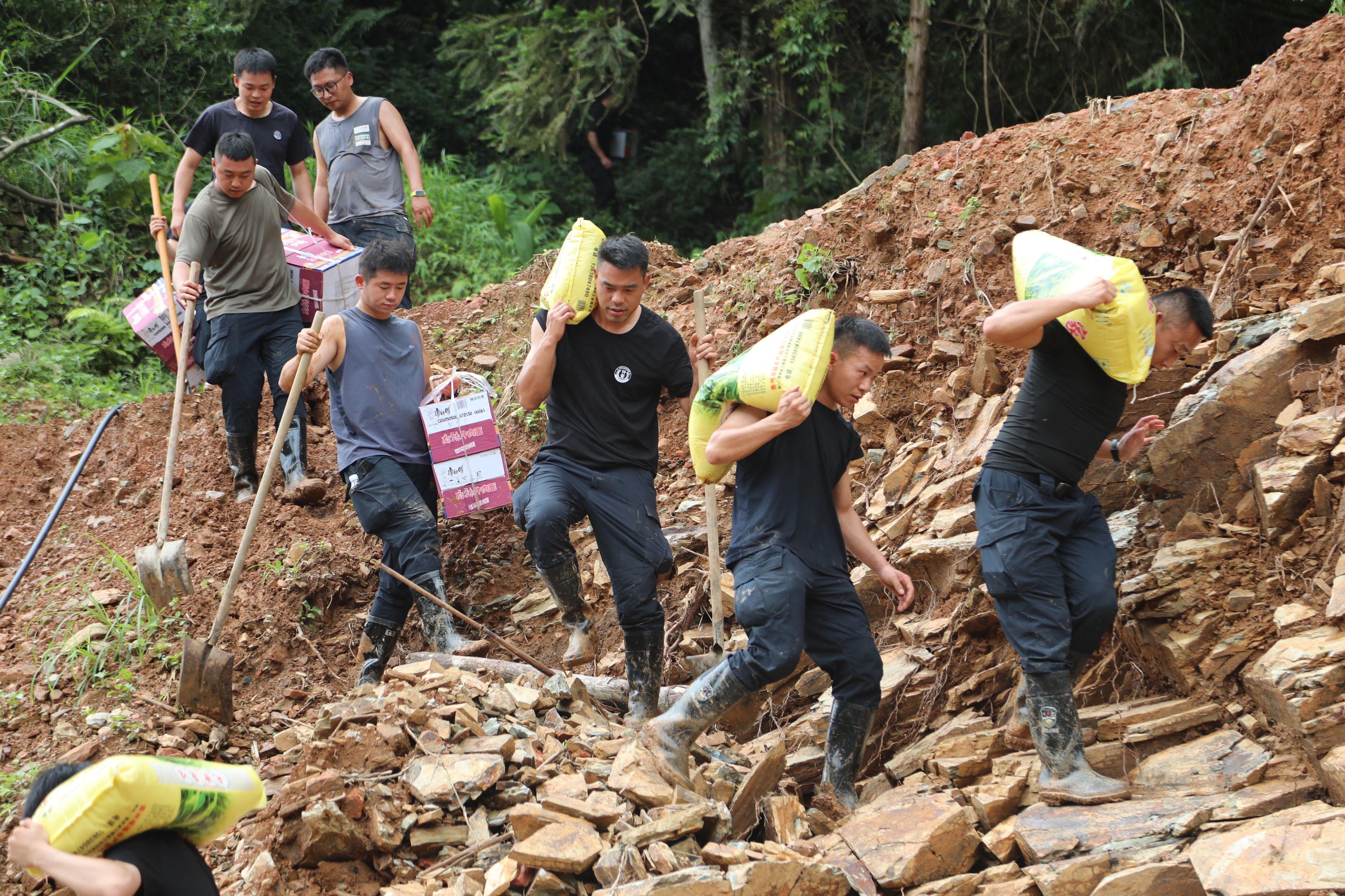 近日,持續(xù)強(qiáng)降雨導(dǎo)致貴州省黔南州三都縣多處受災(zāi),最嚴(yán)重的都江鎮(zhèn)部分村落出現(xiàn)道路沖毀、斷水?dāng)嚯姷木o急情況,部分村落物資難以進(jìn)入群眾家中。為切實(shí)保障受災(zāi)群眾基本生活需求,連日來(lái),黔南州公安局調(diào)動(dòng)特警支隊(duì)和都勻、獨(dú)山、甕安等地警力,與三都縣公安局一起奔赴都江鎮(zhèn)開展清淤工作,并將物資送進(jìn)群眾家中。