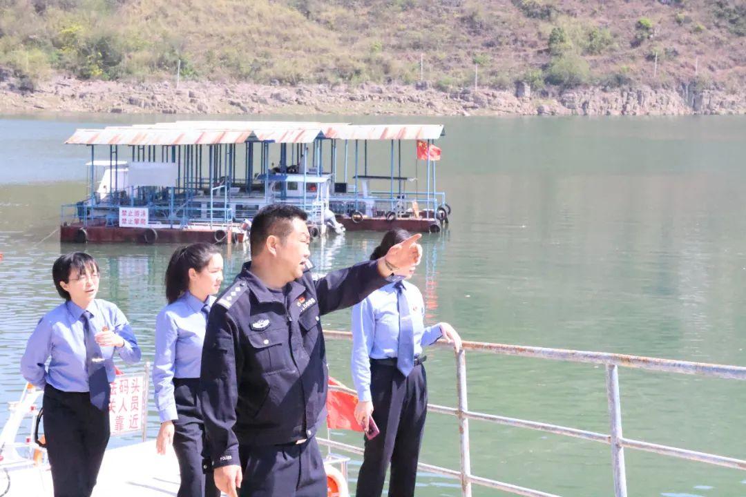站在夜郎湖派出所的門前,對面小山上“十年禁漁,為全局計,為子孫謀”的巨幅標(biāo)語映入眼簾,著裝整齊的派出所民輔警們準(zhǔn)備出發(fā)水上巡邏,輔警陳淵熟練地提著漁簍和捕撈網(wǎng)上了巡邏艇,這些都是巡邏必備工具,用于打撈水面漂浮物和裝收繳的非法捕撈魚類。一同巡邏的還有漁政和海事部門工作人員,雖然制服不同臂章不同,但大家都是同一片水域的守護(hù)者。