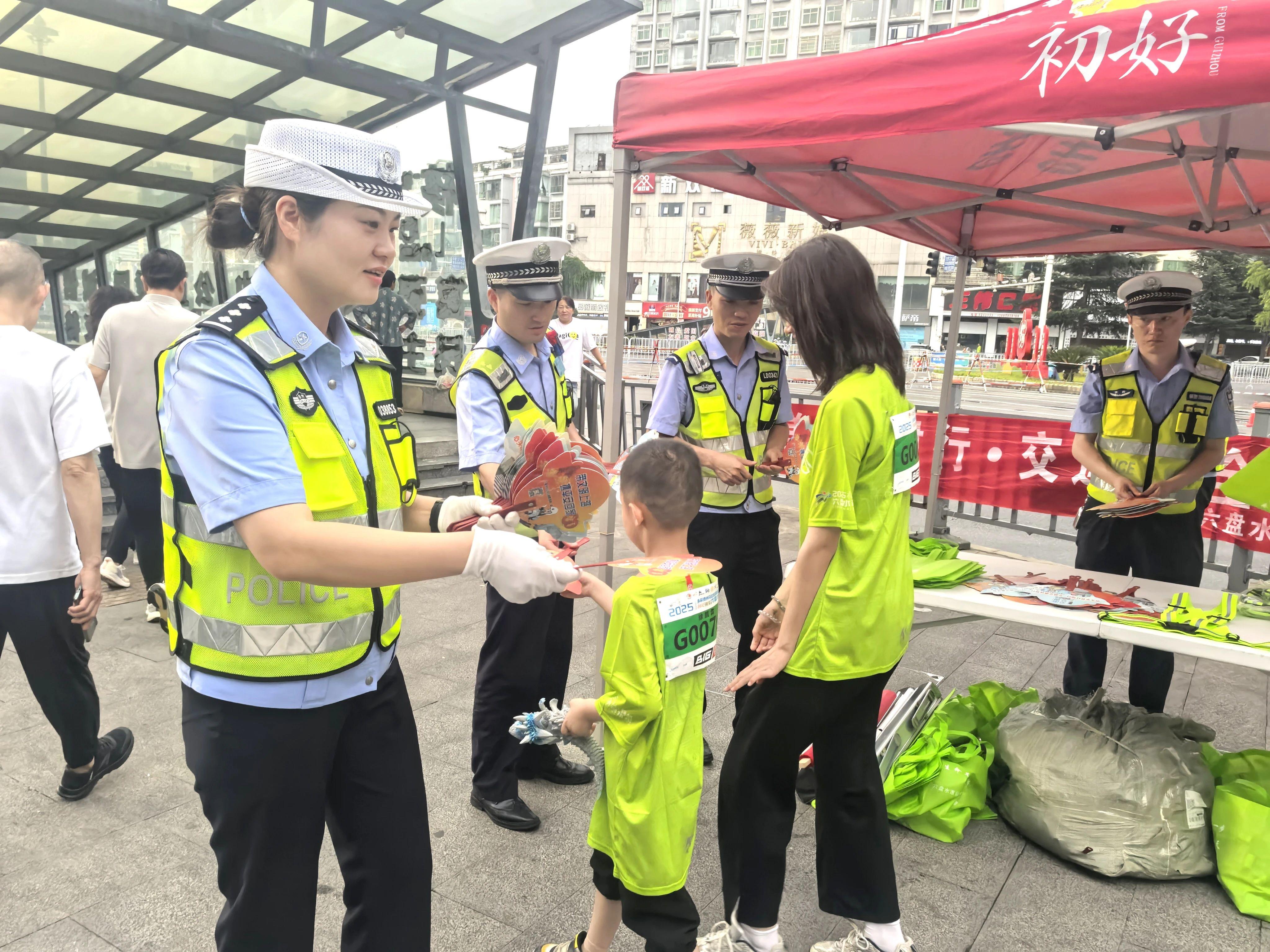“被看見才安全”——暖心發(fā)放反光安全帶針對(duì)參賽者的特點(diǎn),六盤水交警創(chuàng)新服務(wù)舉措,在活動(dòng)現(xiàn)場(chǎng)設(shè)置宣傳服務(wù)臺(tái)向游客、群眾免費(fèi)發(fā)放反光安全帶、小扇子,并現(xiàn)場(chǎng)講解夜間出行安全知識(shí),提醒大家“被看見才安全”,有效提升夜間出行安全系數(shù)。