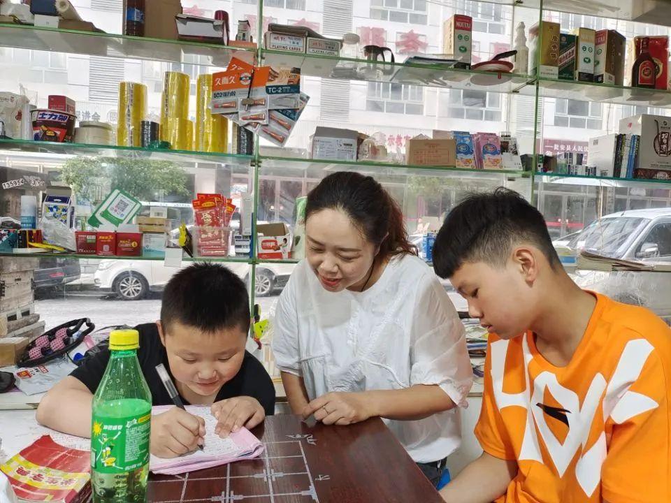 李麗輔導(dǎo)留守兒童寫作業(yè)