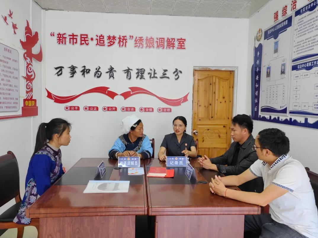 同時,依托非物質(zhì)文化遺產(chǎn)資源,成立“繡娘調(diào)解室”,組建“水鄉(xiāng)巾幗調(diào)解隊”,以柔性調(diào)解化解家庭矛盾;建立苗族“三長”(房長、族長、村長)與法庭聯(lián)動機制,強化親情紐帶作用;融入布依族民俗文化,打造“堂屋說事”解紛平臺,讓糾紛化解更貼近群眾生活。此外,法院還創(chuàng)新運用民族文化元素,創(chuàng)作“離婚勸和歌”“孝道傳承歌”等文藝作品,將民族文化與司法調(diào)解深度融合,累計化解家事糾紛1495件,實現(xiàn)法律效果與社會效果的有機統(tǒng)一。