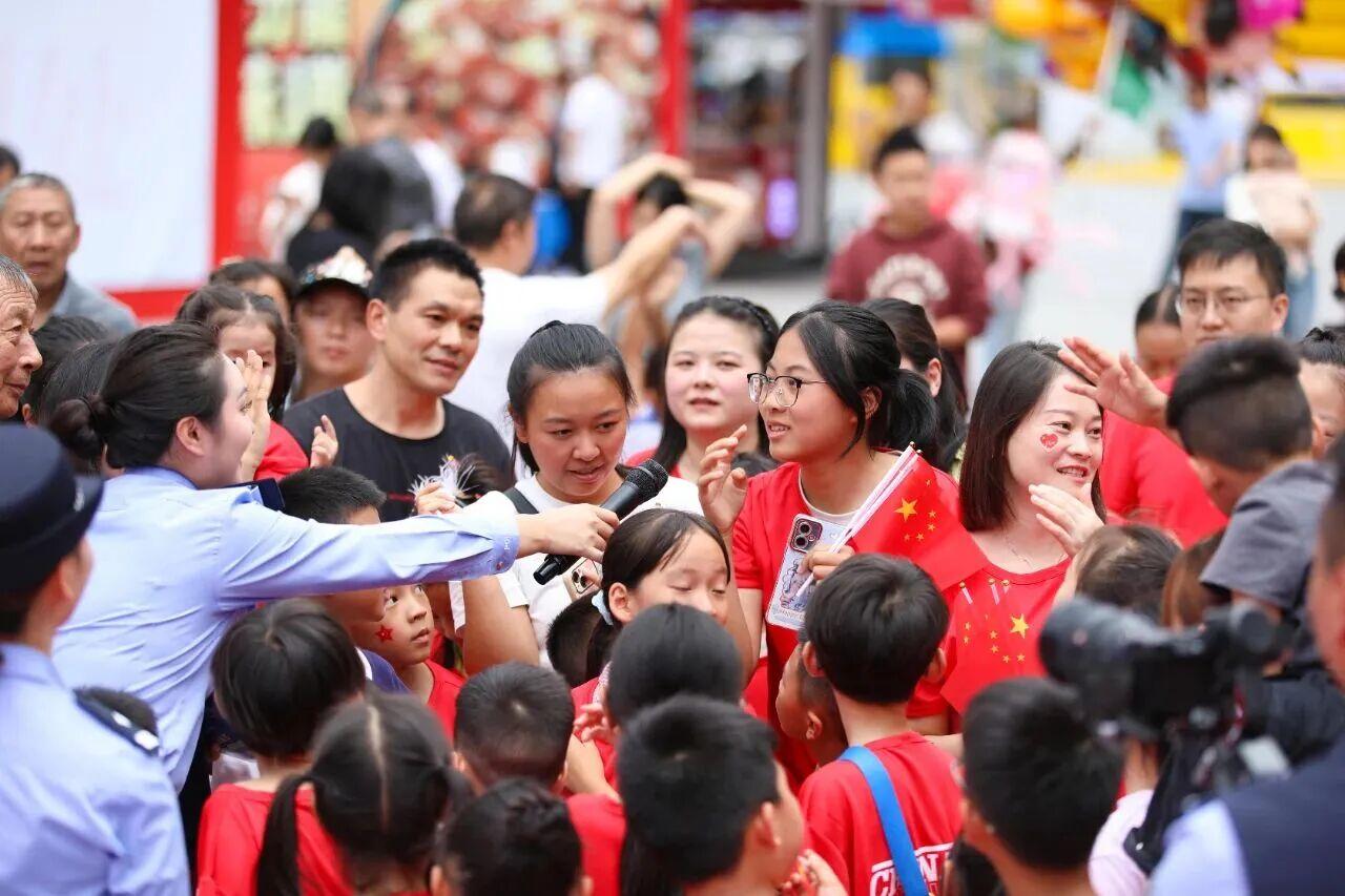 圖為民警對群眾進(jìn)行反詐知識互動活動。