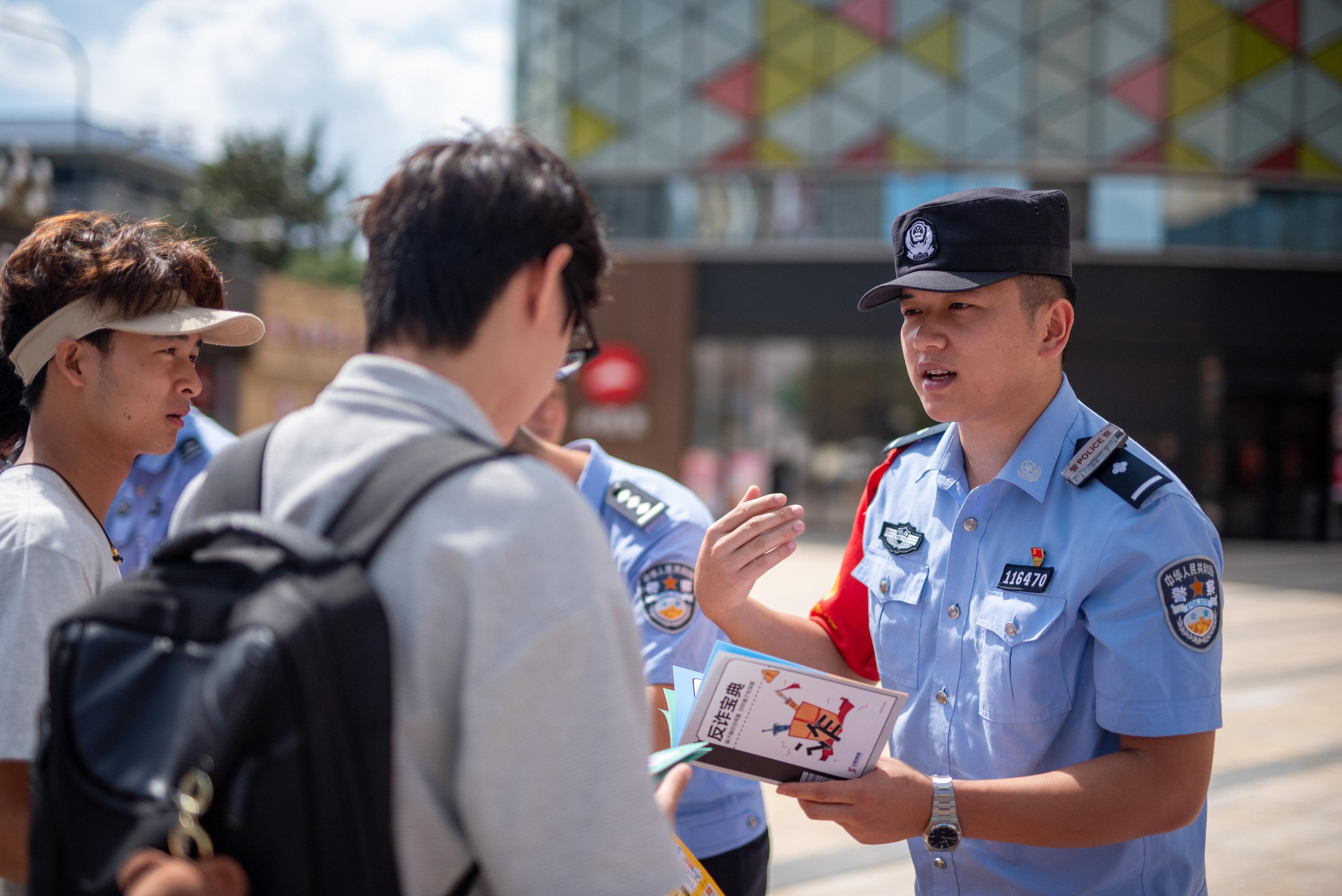 圖為都勻東站派出所民警向旅客開展反詐宣傳。