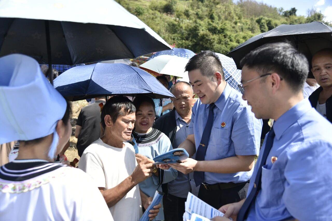 10月9日,正值水族傳統(tǒng)節(jié)日端節(jié)之際,貴州省黔南州三都縣周覃鎮(zhèn)的新各端坡上彩旗飄揚,身著水族服飾的群眾陸續(xù)聚集,準(zhǔn)備參加傳統(tǒng)的賽馬盛會。三都縣檢察院的“雙語普法小分隊”帶著法律手冊、宣傳折扇來到現(xiàn)場,為這場民俗盛宴增添了濃郁的法治氣息。