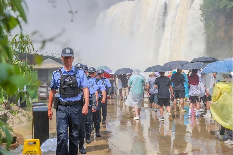 而這樣的瞬間,在年均接待游客580萬(wàn)人次的世界級(jí)景區(qū)黃果樹(shù)瀑布每天都在上演,景區(qū)治安派出所的6名民警和53名輔警以“景警融合”的模式,守護(hù)著115平方公里的景區(qū)安全,成為一道獨(dú)特而亮麗的風(fēng)景線。