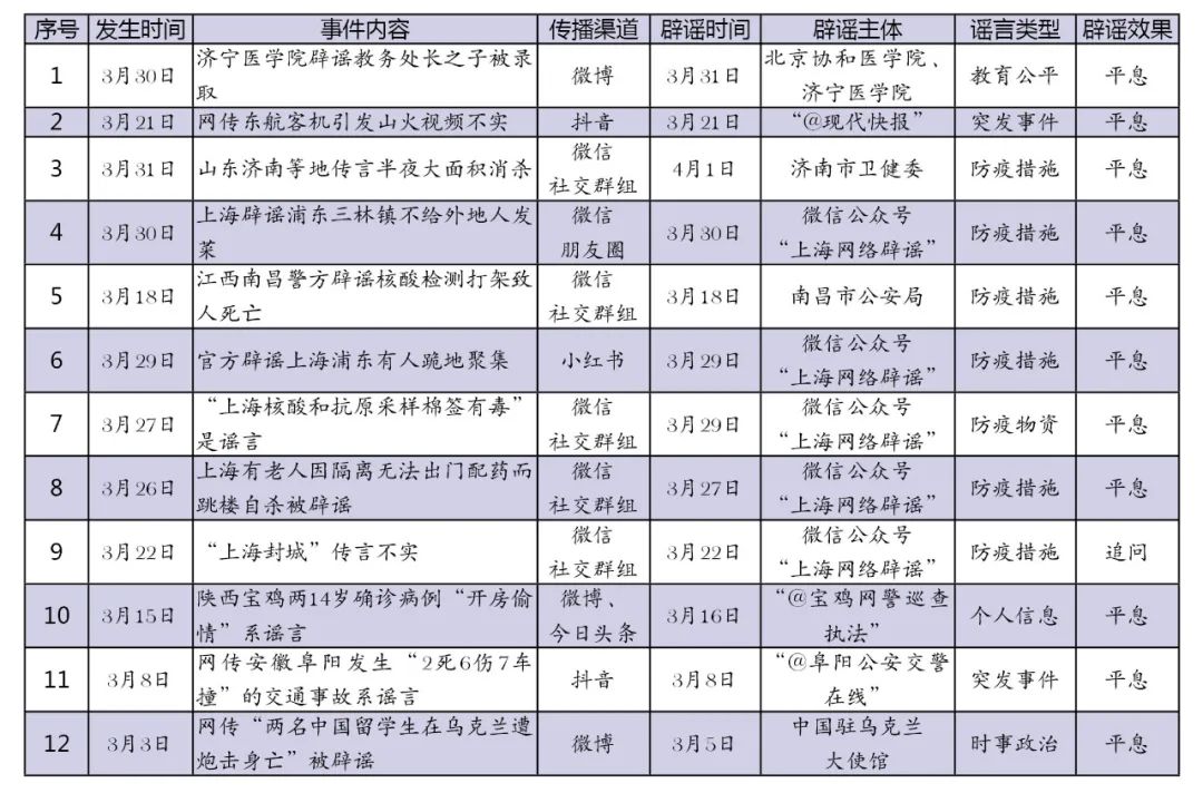 3月網(wǎng)絡(luò)涉法謠言辟謠榜單共梳理、匯總12起熱點事件,圍繞謠言持續(xù)時間、傳播渠道、產(chǎn)生地域、類型以及辟謠平臺等維度綜合分析,篩選兩起關(guān)注度較高、具有典型意義的案例研判,以期為網(wǎng)絡(luò)辟謠工作提供參考借鑒。