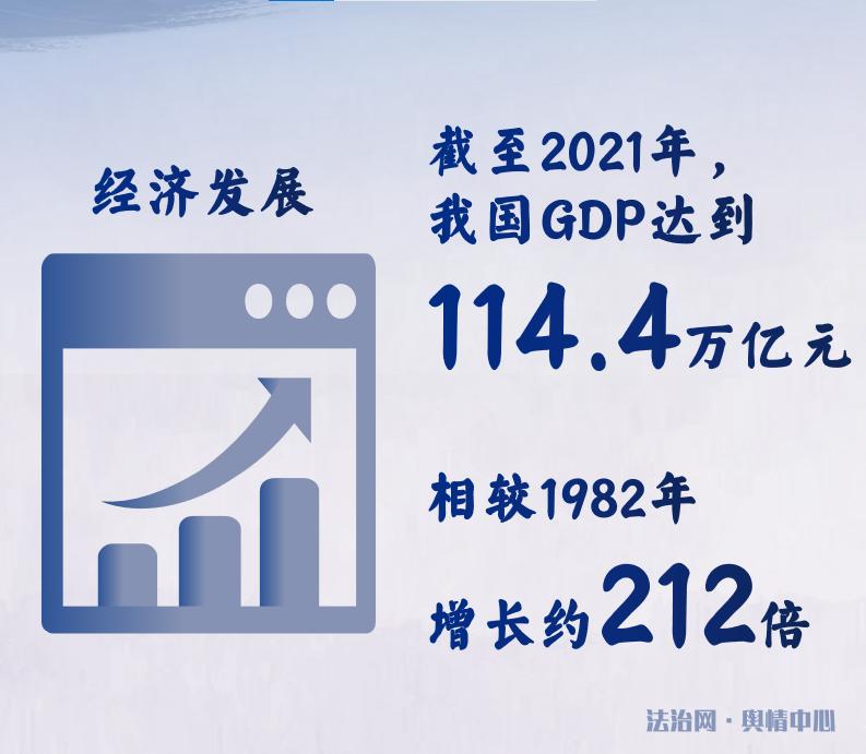 從經(jīng)濟發(fā)展來看,憲法直接或間接保障經(jīng)濟制度,通過監(jiān)督手段不斷調(diào)整社會經(jīng)濟制度的結(jié)構(gòu),實行社會生產(chǎn)方式與生產(chǎn)力的最佳結(jié)合。我國實現(xiàn)了封閉型經(jīng)濟弱國向開放型全球經(jīng)濟大國的轉(zhuǎn)變,國民生產(chǎn)總值從1982年的5373億元躍升到2021年的114.4萬億元,增長了約212倍。